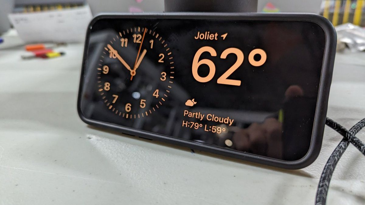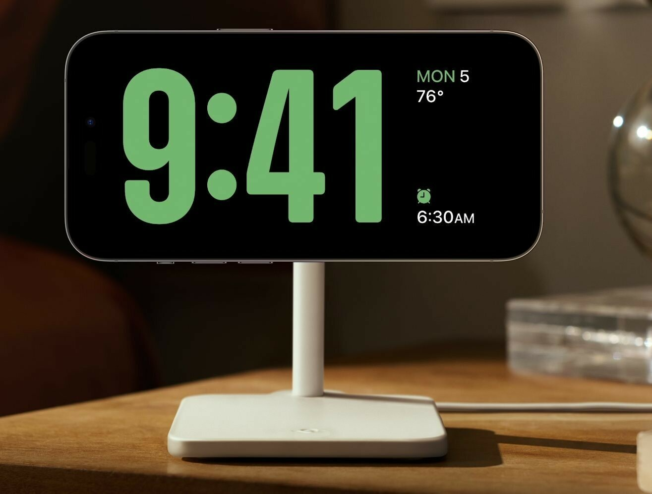 StandBy là chế độ hiển thị thời gian, thời tiết và các tiện ích khác trên iPhone của bạn khi được đặt nằm ngang. Tính năng StandBy sẽ cực kỳ hữu dụng nếu bạn sử dụng kèm với giá đỡ MagSafe, từ đó có thể biến hoá iPhone của bạn thành một chiếc đồng hồ, một cuốn lịch hay một thiết bị thể hiện những kỷ niệm của bạn trên màn hình điện thoại.