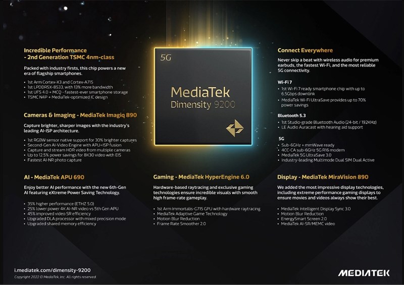 Các công nghệ tiên tiến được trang bị trên Dimensity 9200