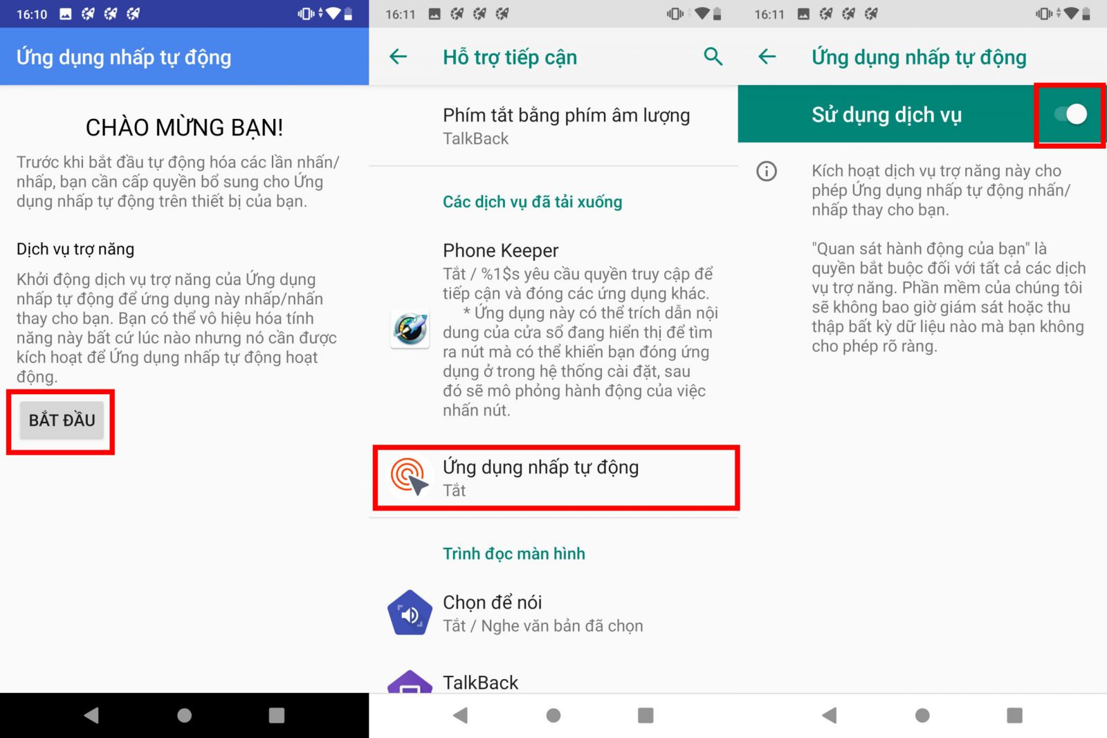 Bước 2: Nhấn Bắt đầu => Chọn mục Ứng dụng nhấp tự động => Nhấn chọn Sử dụng dịch vụ.