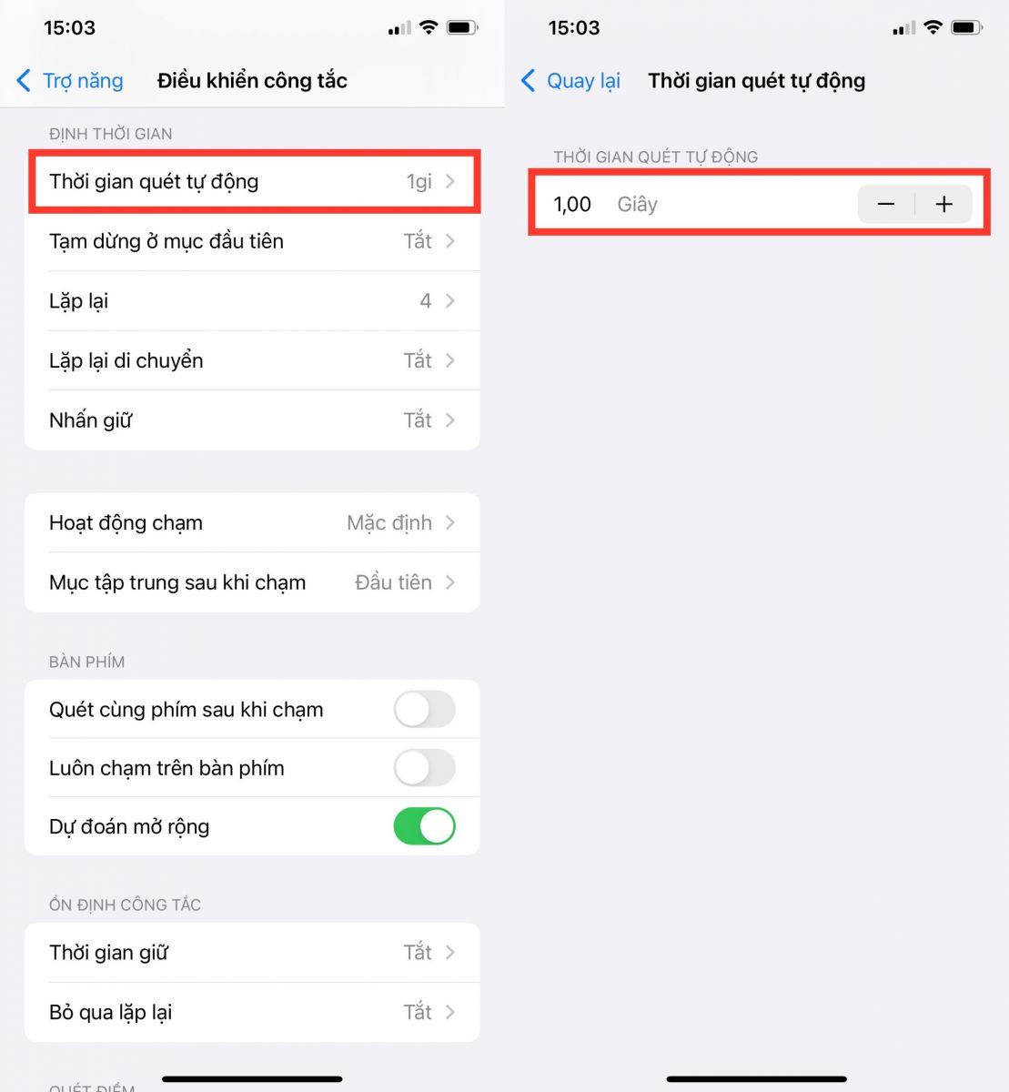 Bước 6: Quay lại mục Điều khiển công tắc => Tại mục thời gian quét tự động, bạn chọn 1 giây.