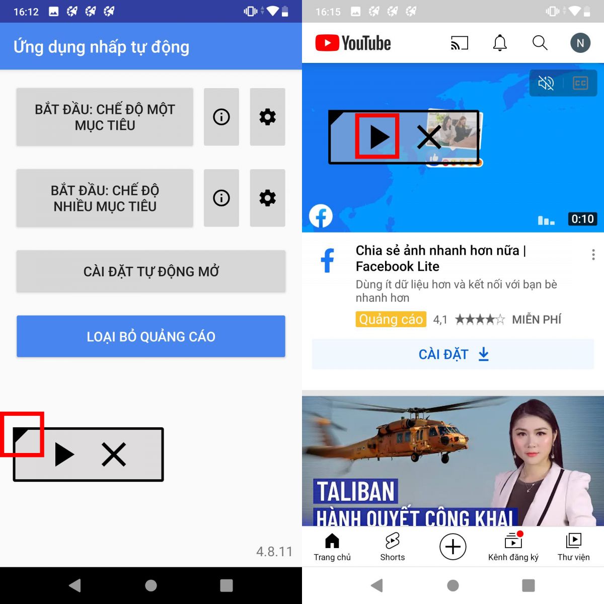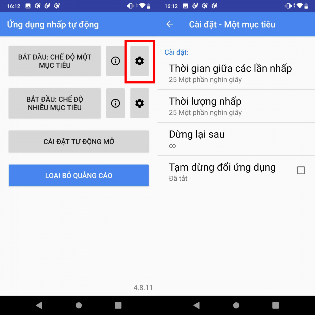 • Tam giác màu đen ở giữa: Bắt đầu hoặc dừng Auto click trên điện thoại