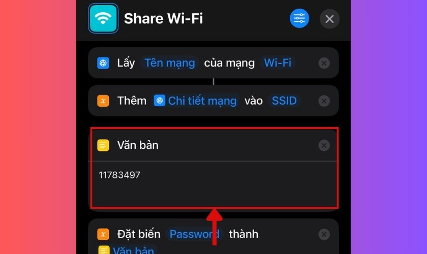 Bước 3: Tại đây bấm vào phần Văn bản. Người dùng tiến hành nhập mật khẩu Wi-Fi đang kết nối trên iPhone mà muốn chia sẻ cho người khác.
