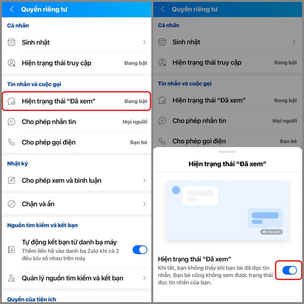 1. Tắt thông báo đã xem