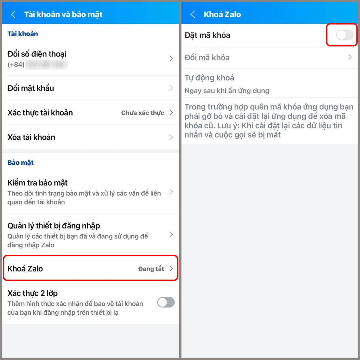 4. Đặt mật khẩu bảo mật Zalo