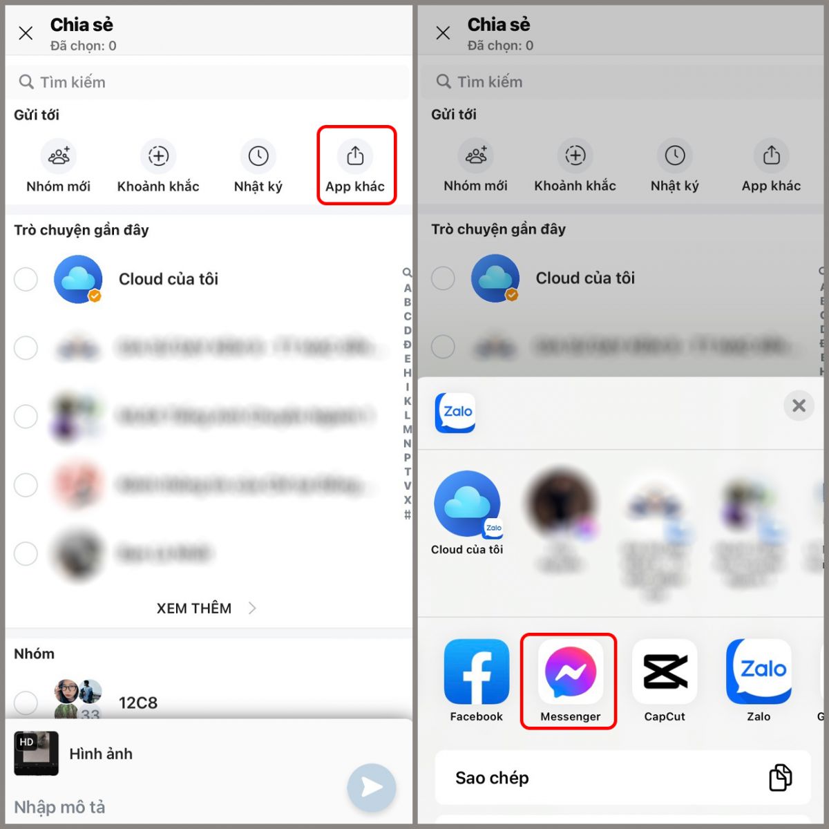 Bước 3: Chọn bạn bè bạn muốn gửi ảnh > Nhấn Gửi, hình ảnh sẽ được chuyển tiếp trực tiếp từ Zalo sang Messenger.