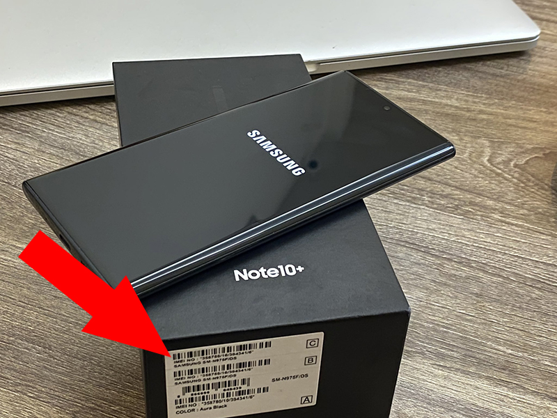- Trên vỏ hộp: Điện thoại Samsung chính hãng luôn in số IMEI trên vỏ hộp.