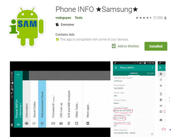 Check IMEI Samsung nguồn gốc dựa trên Phone INFO – 1