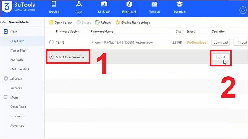 Chọn Select local firmware sau đó nhấn Import