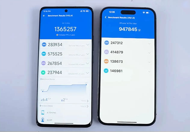 Trên thực tế thì việc so sánh hiệu năng của thiết bị chạy iOS và Android là khá khập khiễng, bởi chúng không chung nền tảng. Tuy nhiên, từ trước đến nay, hiệu suất hoạt động của iPhone luôn mạnh hơn các thiết bị Android cùng thời và iPhone 14 Pro Max cũng không ngoại lệ. Nhờ sự tối ưu tốt của iOS 16 mà iPhone mới có phần nhỉnh hơn về hiệu năng, mặc dù điểm AnTuTu của chip A16 Bionic trên iPhone 14 Pro Max thấp hơn Snapdragon 8 Gen 2 trên Xiaomi 13 Ultra.