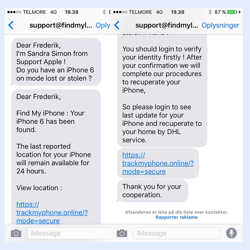 Hiện tại, Apple sẽ không làm gì, kể cả gửi tin nhắn. Hãy thực sự cảnh giác và không cung cấp bất kỳ thông tin nào của bạn, cho bất kỳ ai đến khi bạn cầm được điện thoại trên tay. Quan sát xem đường link có khác lạ không hoặc tốt nhất là bạn tự đăng nhập vào Tìm iPhone để kiểm tra nhé!